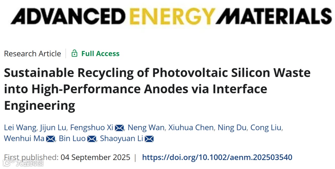 可持续界面工程策略回收光伏硅废料制备高性能硅基负极