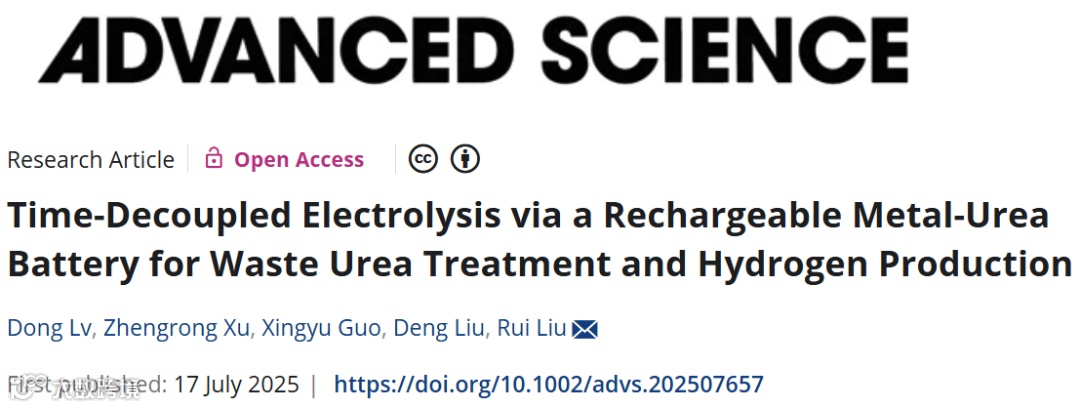 近日,同济大学刘睿教授团队在国际知名期刊《Advanced Science》上发表题为“Time-Decoupled Electrolysis via a Rechargeable Metal-Urea Battery for Waste Urea Treatment and Hydrogen Production”的研究论文。该研究设计了一种基于双功能Ni/Mo2C@CMF催化剂的金属-尿素电池,通过时间解耦的尿素氧化反应(UOR)和氢析出反应(HER),实现了尿素的高效分解与高纯度氢气的连续生产。该电池在20小时内法拉第效率高达99%,最大功率密度达3.4 mW cm-2,为废水处理和清洁能源生产提供了创新解决方案。