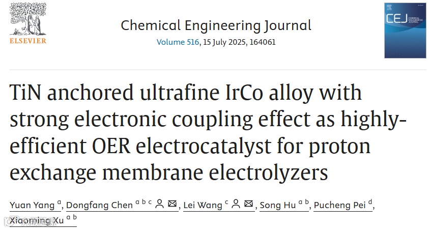 具有强电子耦合效应的TiN锚定超细IrCo合金作为高效OER电催化剂用于质子交换膜电解槽