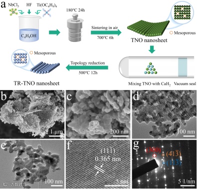 Mesoporous titanium niobate nanosheets with oxygen defects via topology reduction enhancing efficient lithium storage