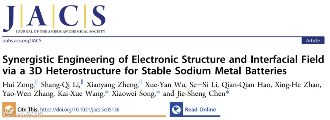 近日,来自上海交通大学的陈接胜,王开学教授与吉林大学的宋晓伟教授合作,在国际知名期刊Journal of the American Chemical Society上发表的题为“Synergistic Engineering of Electronic Structure and Interfacial Field via a 3D Heterostructure for Stable Sodium Metal Batteries”的观点文章。该观点提出协同策略:利用三维碳结构调控离子输运/沉积形貌,通过异源掺杂(如 N, P)优化表面电子结构,并构建具有内建电场的异质结界面(如 g-C₃N₄/MXene)引导 Na⁺ 有序迁移,从而实现了钠离子沉积行为的微-宏观多尺度调控,为下一代高性能三维宿主材料设计指明方向。