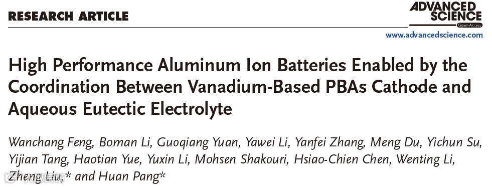 钒基普鲁士蓝类似物正极与水系共晶电解质协同作用实现高性能铝离子电池