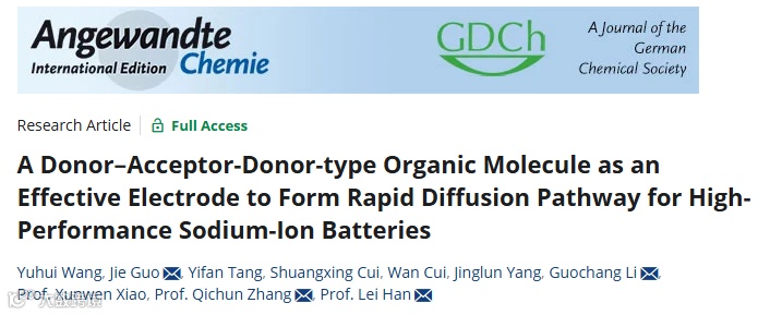 Yuhui Wang, Jie Guo,* Yifan Tang, Shuangxing Cui, Wan Cui, Jinglun Yang, Guochang Li,* Xunwen Xiao, Qichun Zhang,* Lei Han*, A Donor-Acceptor-Donor-type Organic Molecule as an Effective Electrode to Form Rapid Diffusion Pathway for High-Performance Sodium-Ion Batteries, Angew. Chem. Int. Ed., 2025, e202513887.