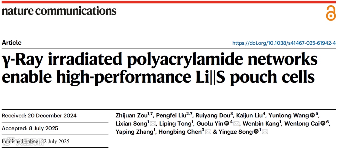 γ射线辐照聚丙烯酰胺助力高性能锂硫软包电池的构建