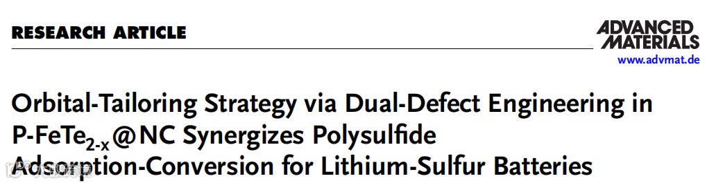 Orbital-Tailoring Strategy via Dual-Defect Engineering in P-FeTe2-x@NC Synergizes Polysulfide Adsorption-Conversion for Lithium-Sulfur Batteries