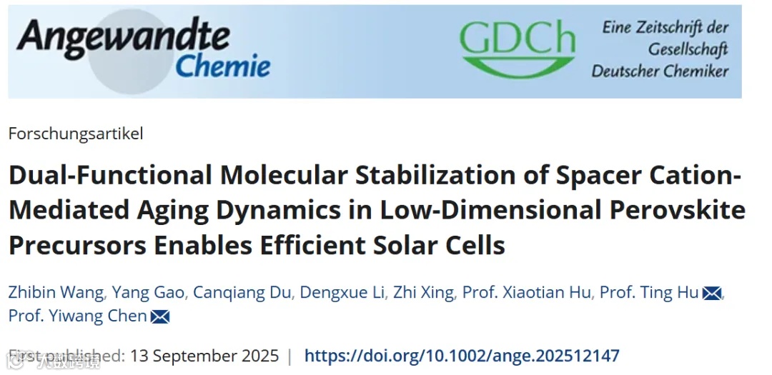 双功能分子稳定策略抑制低维钙钛矿前驱体中间隔阳离子介导的老化实现高效太阳能电池