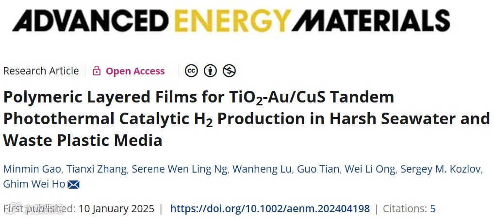 传统悬浮光催化剂在高碱度、高盐度和高有机物含量的严苛海水或废水环境中面临稳定性和效率的巨大挑战。此外,基于悬浮液的光热辅助催化也面临更多难题,尤其是光催化剂和光热材料之间形成的异质结会破坏电荷转移途径,并因光热诱导的载流子复合而加剧。本文设计了一种聚合物串联的光热催化(PTPC)薄膜。 TiO2/Au 光催化层和 CuS 光热层在空间上被聚合物层分隔和封装,这些聚合物层可作为相互冲突的光化学-光热途径的间隔抑制剂和耐腐蚀的氧化还原介质。PTPC薄膜表现出增强的光吸收、传质和光热效应,使得光热、光生成-电荷分离以及光氧化还原在空间上相互解耦但又相互协调,超越了传统的悬浮催化剂,并能够在钝化膜表面进行界面氧化还原反应,实现了海水和废塑料介质高效产氢。PTPC体系代表了聚合物薄膜光催化的一种新范式,这种范式可用于开发本地化的原位光热制氢方法,从而最大限度地减少物流和环境挑战,并展示了环境修复与可再生能源技术融合的重大突破。
