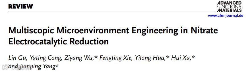 基于此,东华大学杨建平研究员团队、南华大学滑熠龙、上海理工大学徐慧等在国际知名期刊Advanced Functional Materials上发表题为:“Multiscopic Microenvironment Engineering in Nitrate Electrocatalytic Reduction”的综述文章。该综述从多视角系统分析了微环境工程对NO3RR的作用机制,重点阐述了理解NO3RR微环境调控的四个维度:电子/分子相互作用、催化剂/反应物相互作用、溶液相互作用以及扩散相互作用。此外,详细探讨了可调控反应微环境的原位表征技术、各类材料体系以及反应器设计方案。