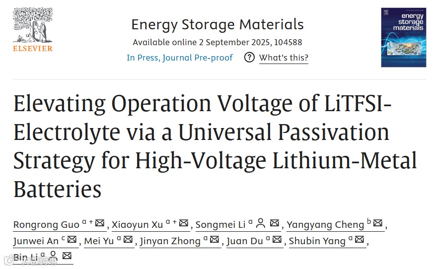 普适的钝化策略提升LiTFSI电解液工作电压满足高压锂金属电池