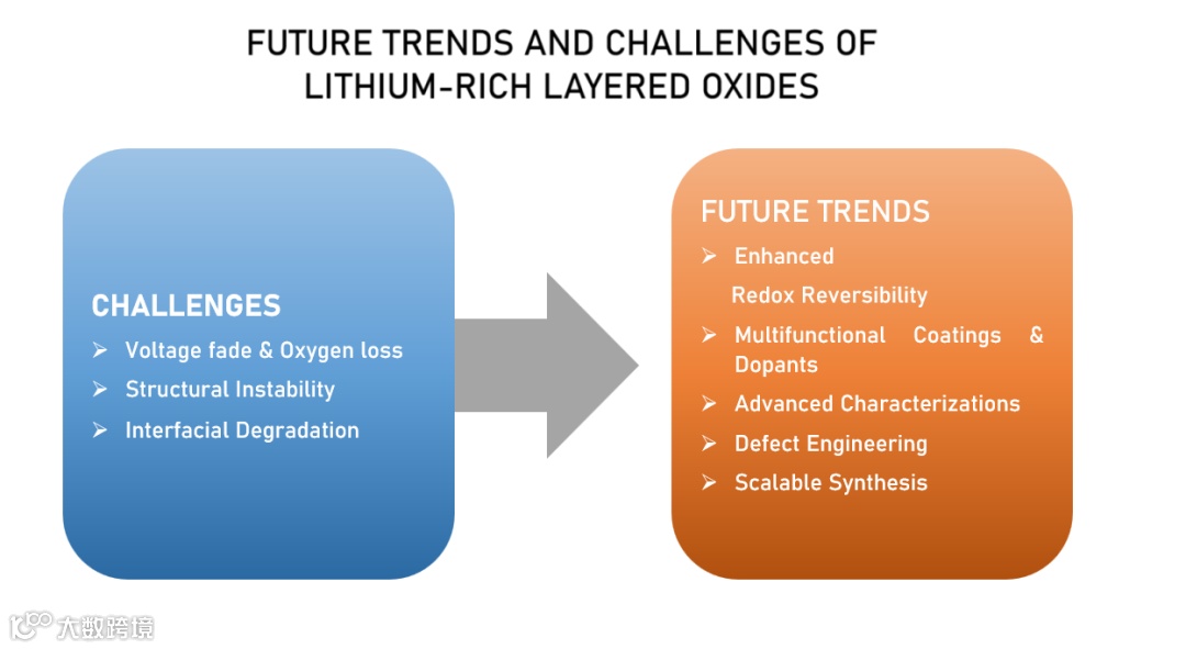 图7富锂层状氧化物的挑战和新兴策略示意图。