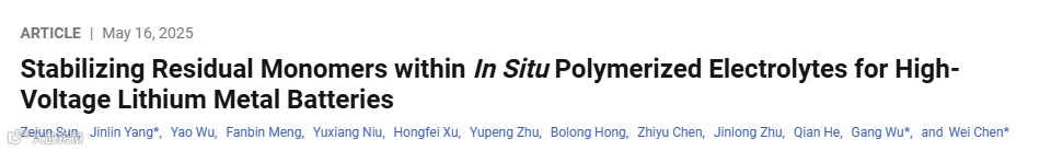 原位聚合电解质中残留单体的稳定化助力高电压锂金属电池