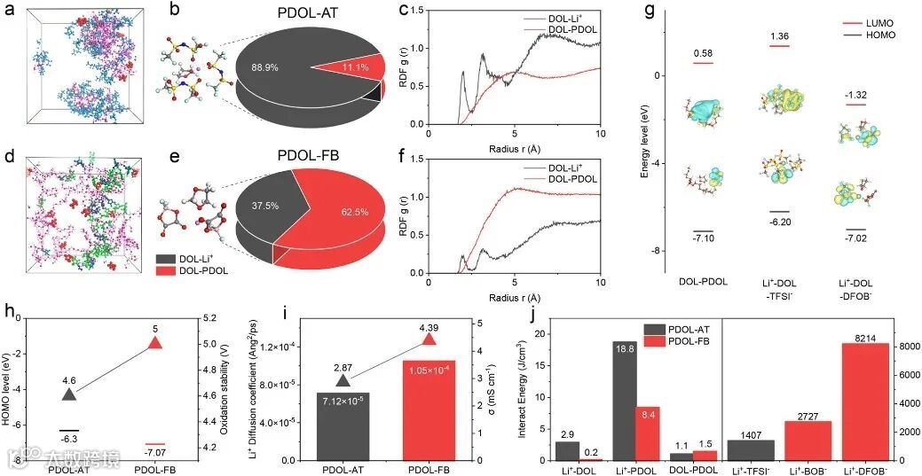 图4. 通过分子动力学模拟与密度泛函理论计算对PDOL电解质进行的理论模拟研究