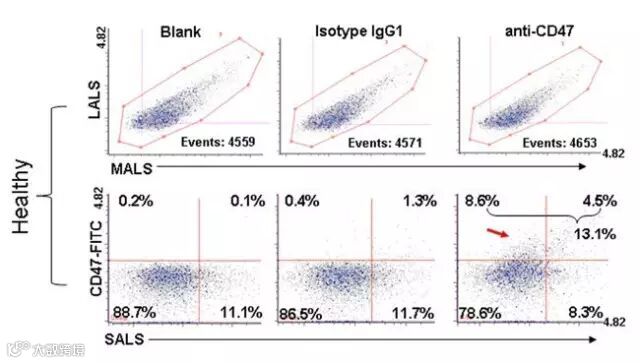 利用图1的检测参数设置,结合CD47荧光标记,分析人体血液中与乳腺癌相关的CD47表达阳性外泌体。