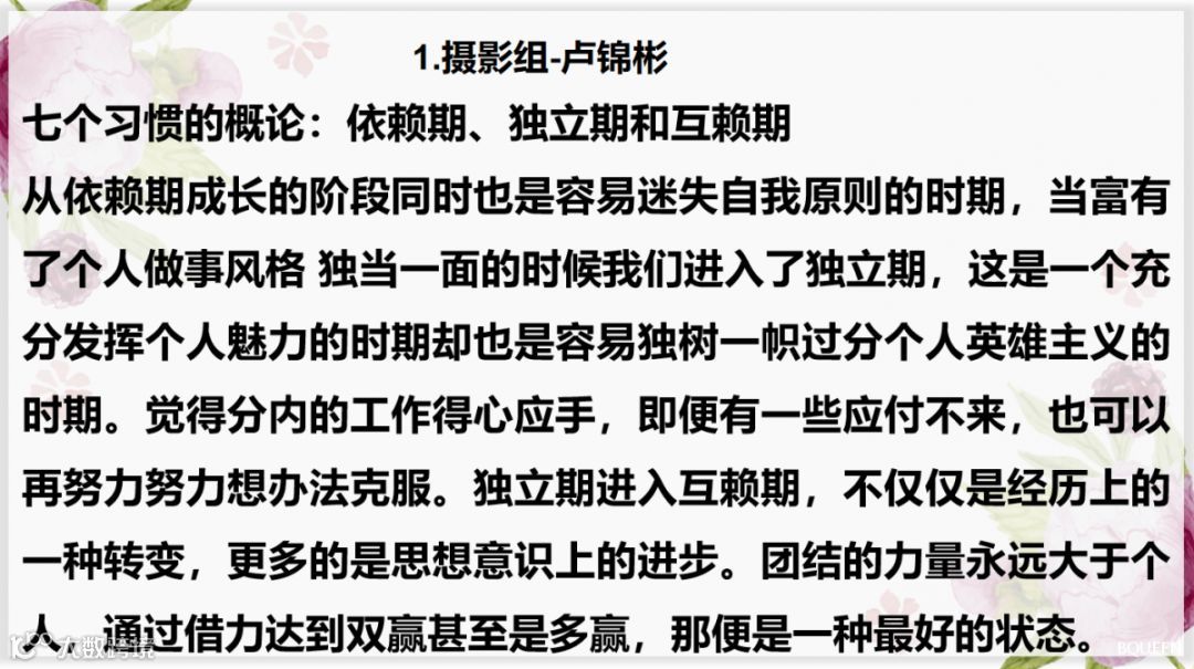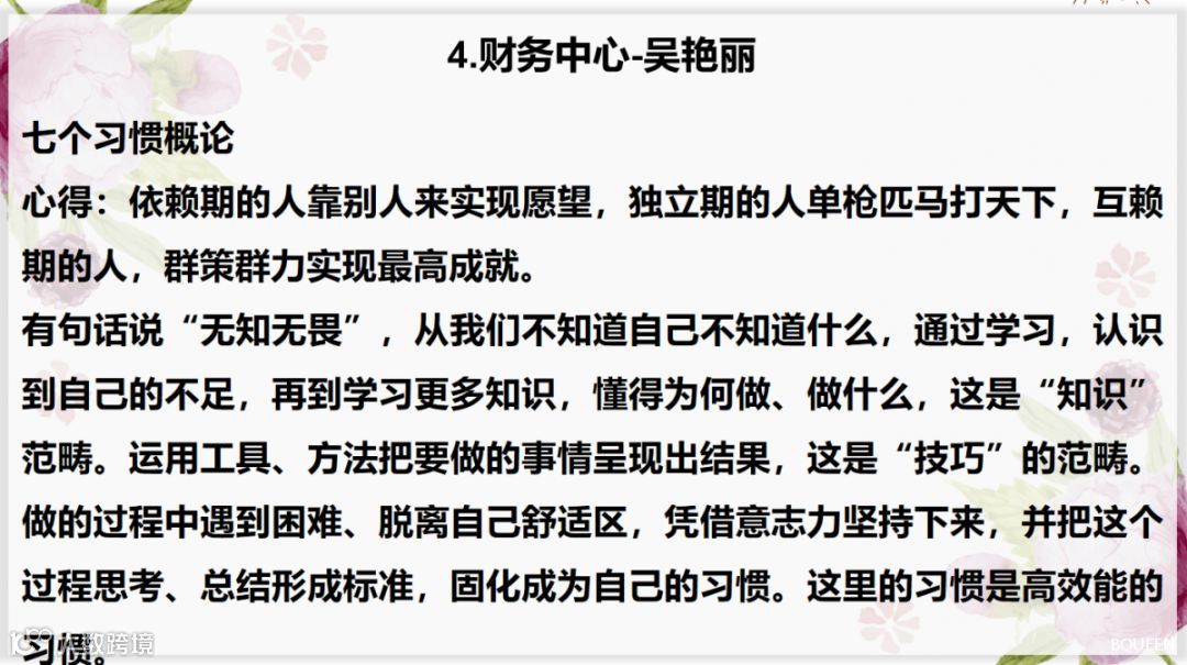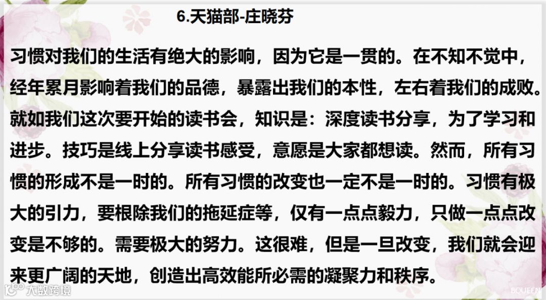 本次分享会分享的章节是《七个习惯概论》有许多小伙伴针对此章节进行了心得分享!