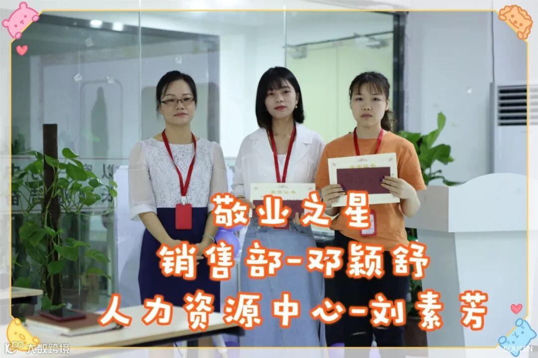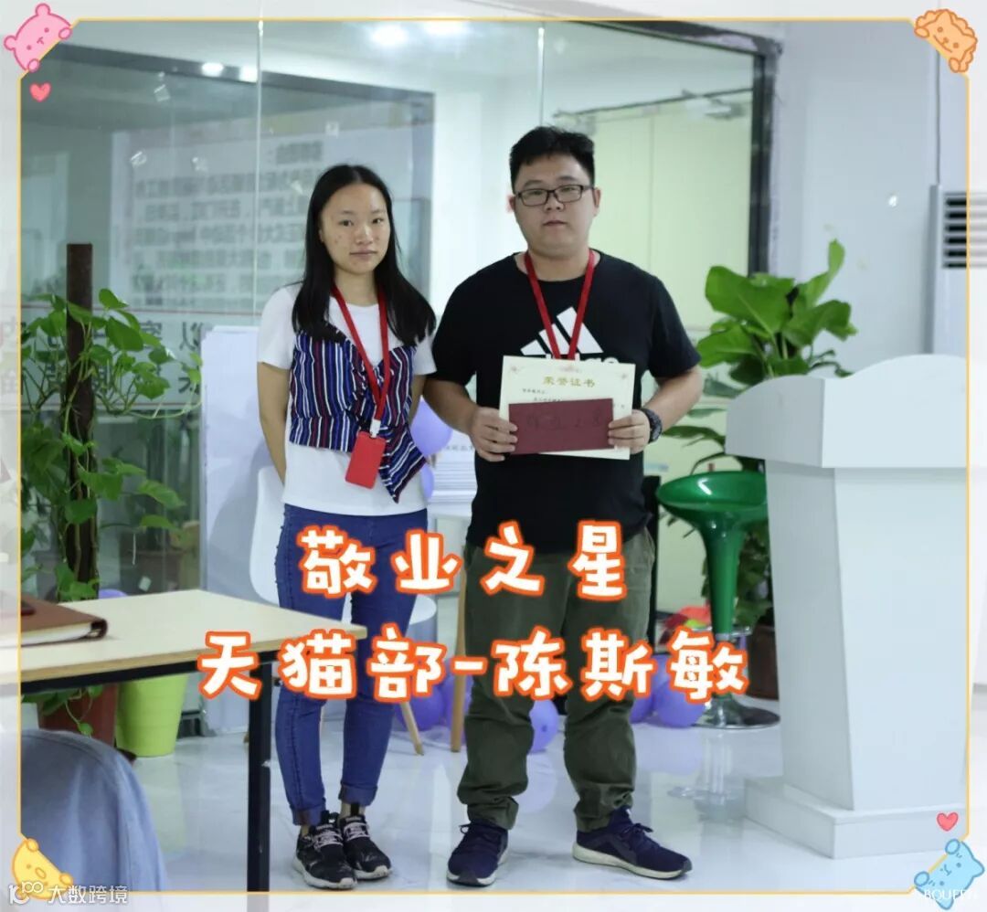 获得2019年6月敬业之星的小伙伴有:天猫部-陈斯敏,人力资源中心-刘素芳,销售部-邓颖舒