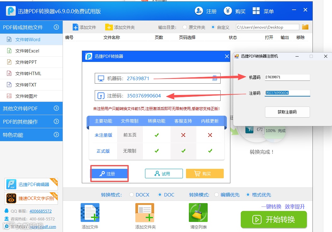功能超全面,不止转换这么简单除了核心的格式转换功能,软件还集成了多种实用办公工具:PDF 合并、分割、加密保护、文档翻译、智能识别等,覆盖办公中 PDF 处理的各类需求,一个软件就能替代多个工具,大幅提升办公效率。破解版实测可用,全功能无限制畅享这款纯国产软件操作便捷,更关键的是提供注册破解版本,安装包内附带注册机。亲测可完美完成注册激活,激活后软件无任何功能限制,所有实用功能都能免费畅享,之前苦于找不到可用破解版的朋友,这款千万别错过!
