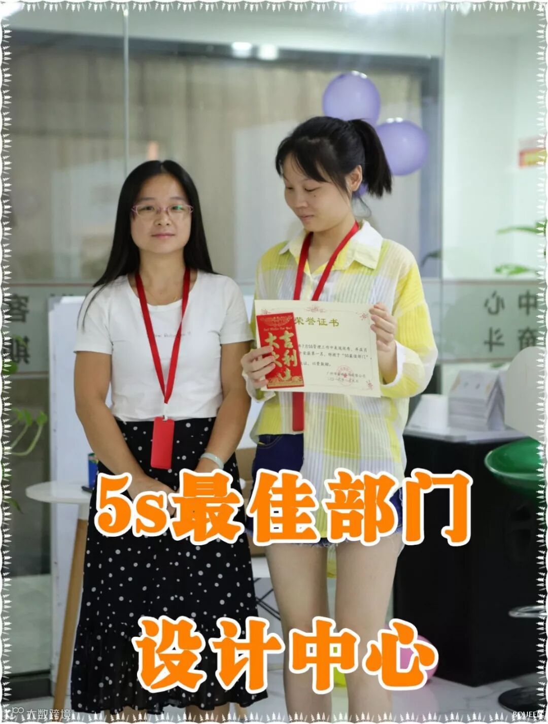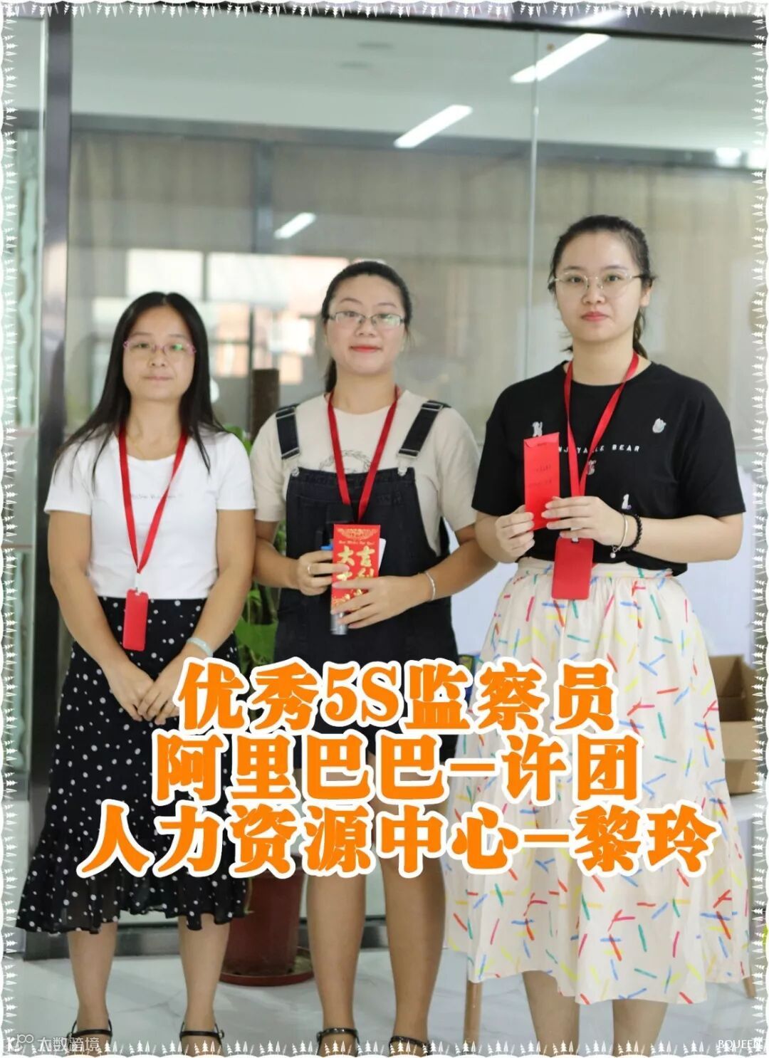 获得5S最佳部门称号的是“设计中心”!获得优秀5S监察员称号的为:阿里巴巴-许团;人力资源中心-黎玲