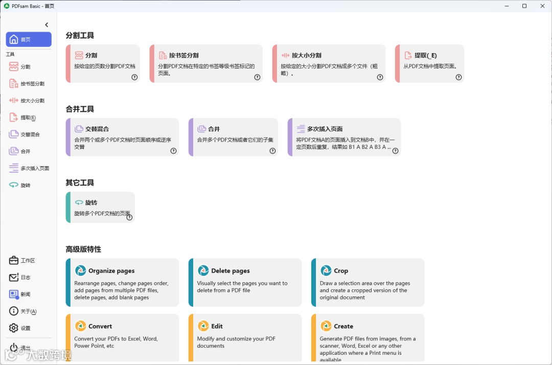 PDFsam Basic 是一款免费、开源的PDF处理工具,专注于PDF的拆分、合并等基本操作。界面简洁、功能实用,无需学习成本,打开即用,绝对是办公和学习中的得力助手!