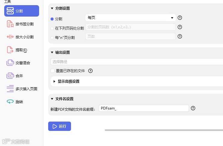 这是一款非常强大的PDF处理工具---PDFsam Basic。