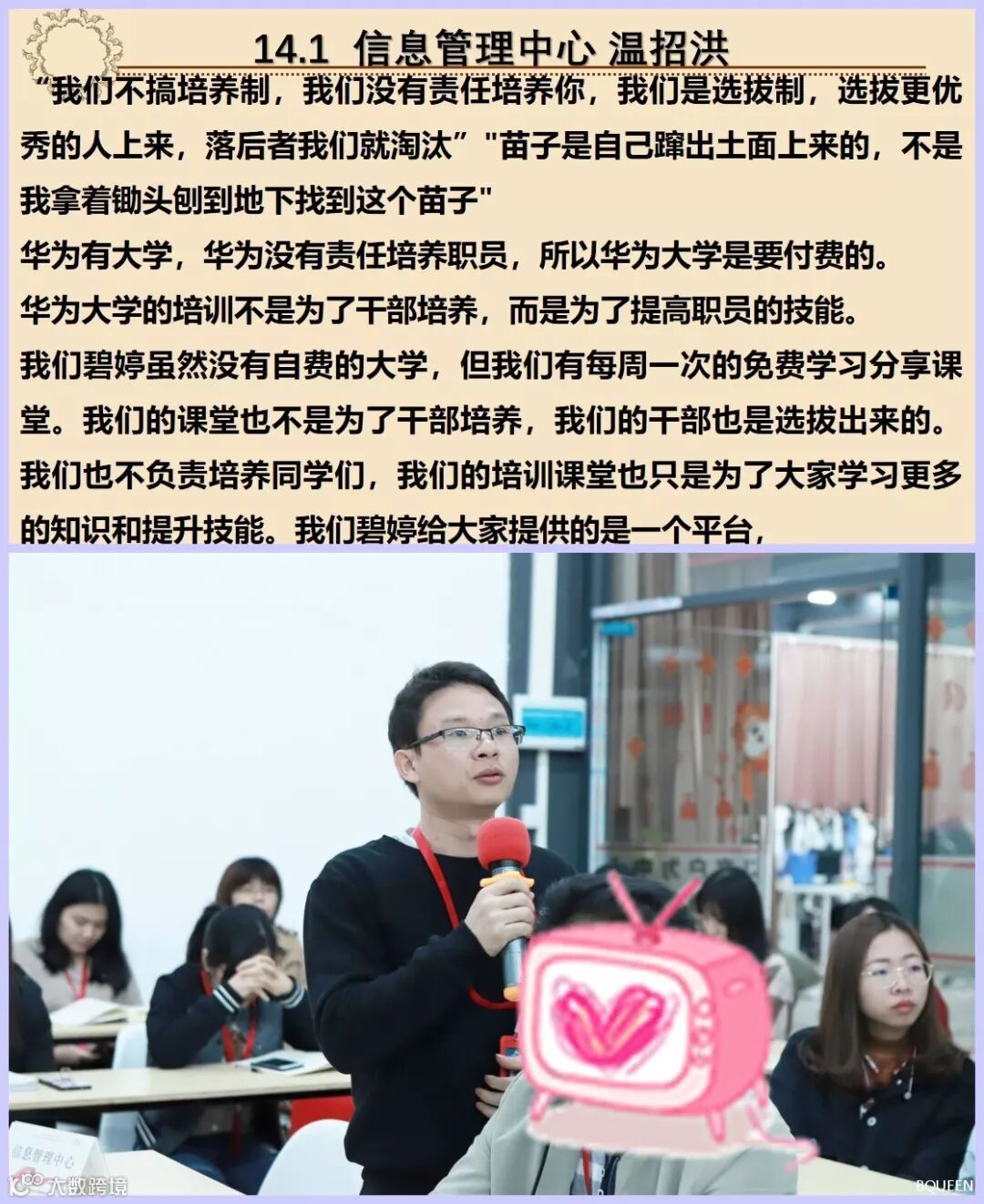 享会又到了每周学习分享的殿堂,在这里,你会看到思想火花的碰撞;在这里,你可以倾听员工心里的声音;在这里,我们一起探讨管理的真谛!