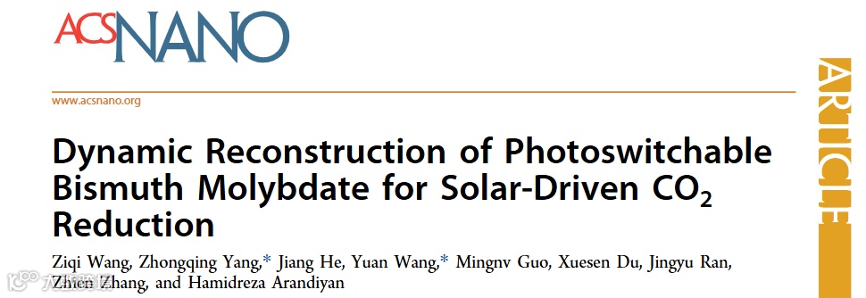 近日,来自重庆大学杨仲卿教授与澳大利亚墨尔本大学Helena Wang合作,在国际知名期刊ACS Nano上发表题为“Dynamic Reconstruction of Photoswitchable Bismuth Molybdate for Solar-Driven CO2 Reduction”的研究论文。该研究论文揭示了在太阳光驱动CO2还原中Bi位点的光控动态重构机制,并进一步阐明了重构过程中载流子的迁移机制,这对于了解太阳光驱动反应中动态活性位点的重构机制提供新的见解。