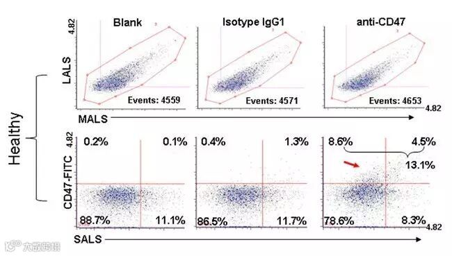 利用图1的检测参数设置,结合CD47荧光标记,分析人体血液中与乳腺癌相关的CD47表达阳性外泌体。