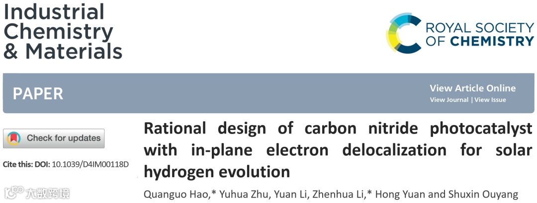 中科院理化所李振华研究员、中科院精密测量院郝全果团队:诱导面内电子离域提升氮化碳光催化产氢