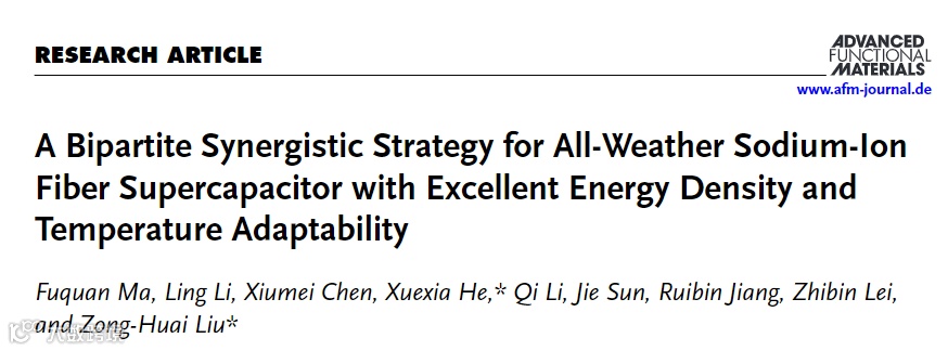 A Bipartite Synergistic Strategy for All-Weather Sodium-ion Fiber Supercapacitor with Excellent Energy Density and Temperature Adaptability”发表在国际期刊《Advanced Functional Materials》