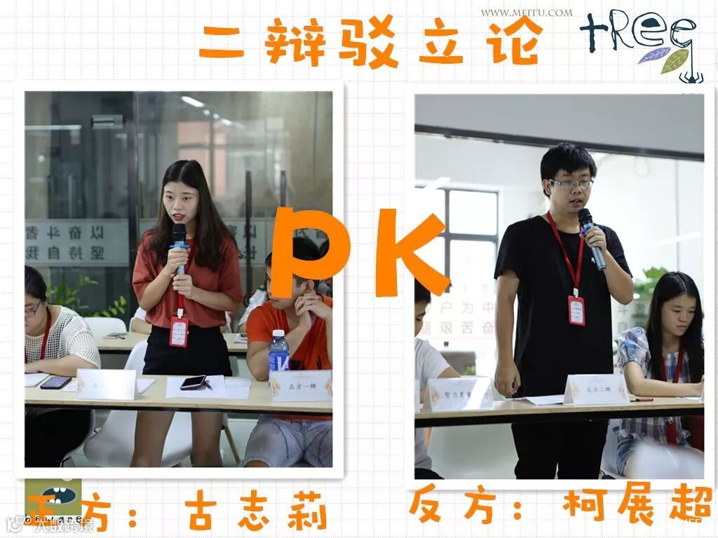 观众根据自己选择的持方对号入座,本次辩论赛的流程为一辩、二辩、三辩、观众自由辩论、结辩环节,最后评分将由企业文化委员会成员进行投票表决。