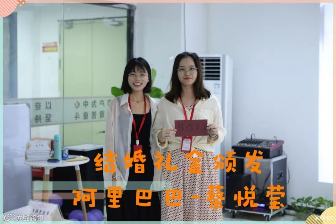 在辩论赛的最后,我们为阿里巴巴部门新婚的蔡悦莹颁发了结婚礼金,站在公司的角度是高兴的,它见证了员工的成长,在人生道路的转变,也很感谢小伙伴们能和我们一起成长!