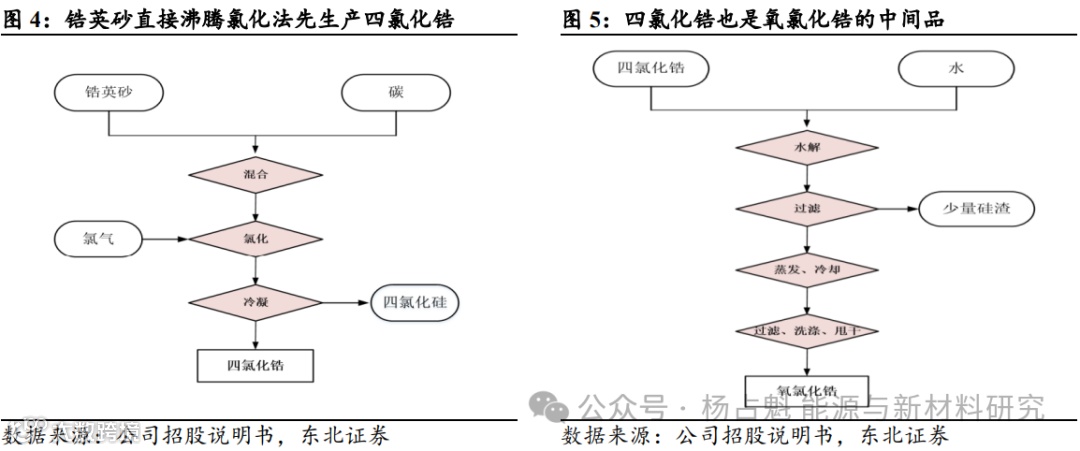 氧氯化锆:公司目前具备氧氯化锆年产能2万吨,规划产能达10万吨/年。氧氯化锆是重要化工、冶金等基础原料,可用于制备高纯氧化锆、碳酸锆、硫酸锆、硝酸锆等几十种锆化合物,除被广泛应用于陶瓷、玻璃、涂料、造纸等领域外,还可直接用于纺织、皮革、橡胶、塑料等行业,作为助染剂、鞣革剂、干燥剂等;氧氯化锆也可以用于制造各类型的稳定型、复合型氧化锆,这些氧化锆产品是高端电子陶瓷、传感器、燃料电池电解质等重要原材料;氧氯化锆还可用于制备海绵锆,经后续加工可用做核电及核军工应用的堆芯材料及化工装备材料等。