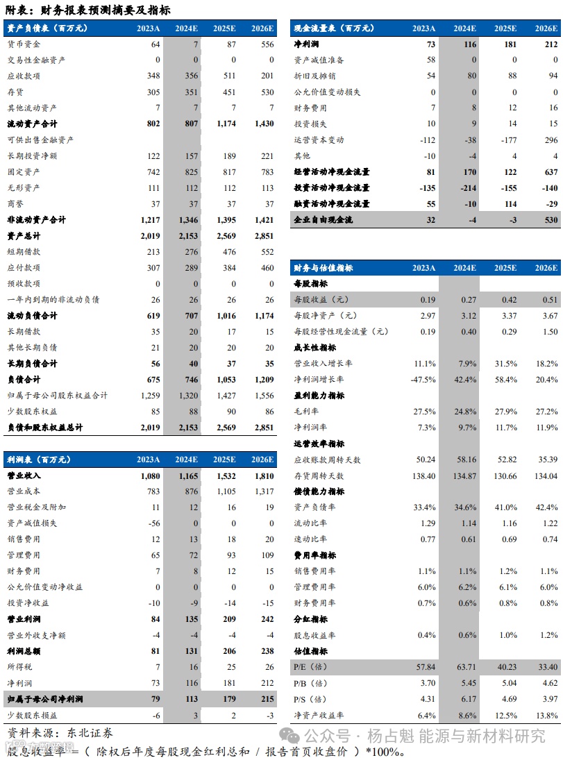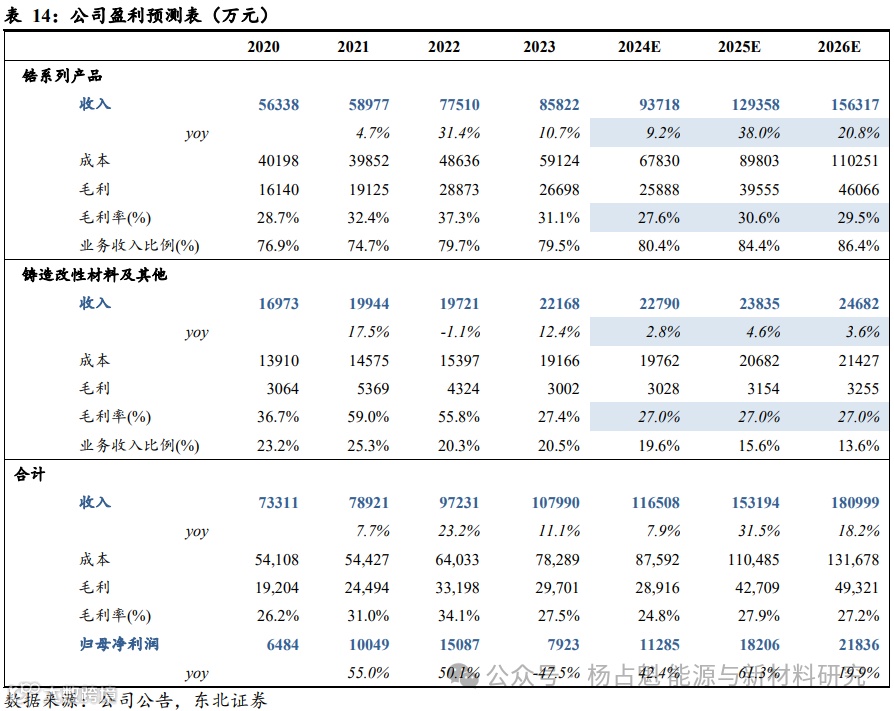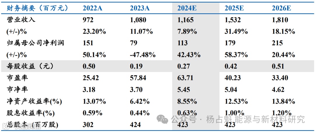 综上,预计2024-2026年公司营业收入分别为11.65/15.32/18.10亿元,归母净利润分别为1.13/1.79/2.15亿元。伴随公司进军“核电+固态电池”领域,以及电熔锆产能的逐步爬坡,后续成长空间充足,予以“增持”评级。