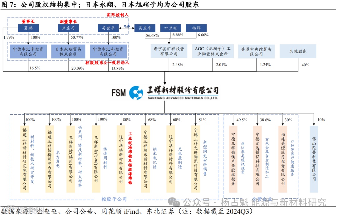 公司股权结构集中,股东背景雄厚。公司控股股东为宁德市汇阜投资有限公司、日本永翔贸易株式会社、宁德市汇和投资有限公司(以上三家为一致行动人),公司董事长为夏鹏先生,此外,公司主要股东还包括寿宁县汇祥投资有限公司、日本旭硝子工业陶瓷株式会社、香港中央结算有限公司,截至2024Q3,以上股东合计持有公司总股本的60%,公司股权结构集中;公司股东背景雄厚,日本永翔贸易株式会社、日本旭硝子工业陶瓷株式会社均为公司股东,日本永祥贸易株式会社创始人兼董事长卢庄司先生,为公司副董事长。