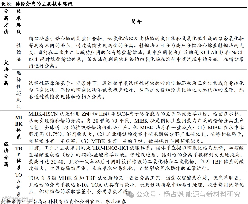 锆铪分离在研中,有望为核级锆降本,铪或能贡献更大利润
