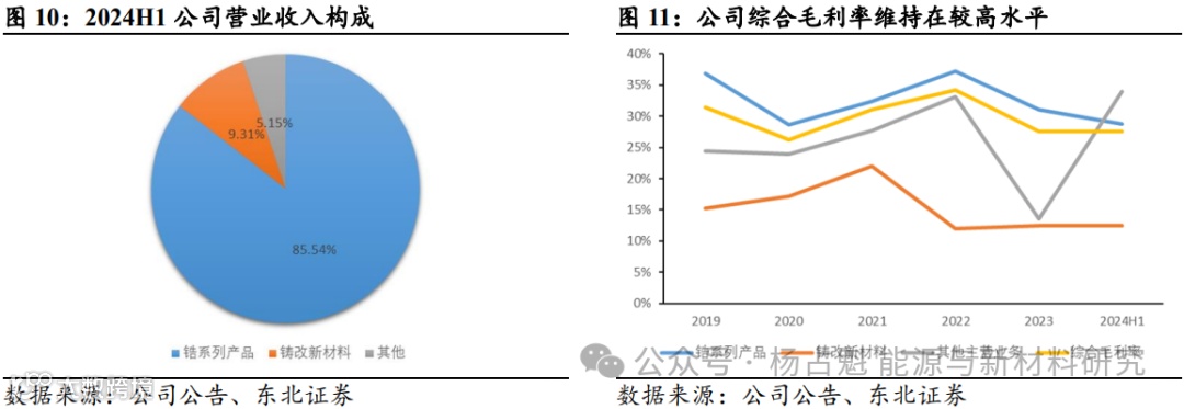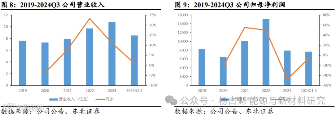 公司主业较为稳定,毛利率稳定在较高水平。2019-2023年,公司营业收入整体由7.61亿元稳步增长至10.8亿元;2024年前三季度,公司实现营业收入8.5亿元,同比增长0.94%。2019-2022年,公司归母净利润整体由8271.04万元增长至15087.15万元;2023年受原材料采购成本上升、市场竞争加剧及计提资产减值等原因,公司实现归母净利润7923.31万元,同比下降47.48%;2024年前三季度公司实现归母净利润7692.25万元,同比略下降6.13%。2024年上半年,公司锆系列产品营收占比为85.54%,是公司最主要的收入来源,铸改新材料业务营业收入占比为9.31%,其他业务营业收入占比为5.15%。2019-2024H1,公司锆系列产品毛利率在28.65%-37.25%,铸改新材料毛利率先升后降,2022年后基本保持在12%左右。锆系列产品营收占比较高,对综合毛利率影响较大,2019-2024H1,公司综合毛利率在26.19%-34.14%区间窄幅波动,维持在较高水平。
