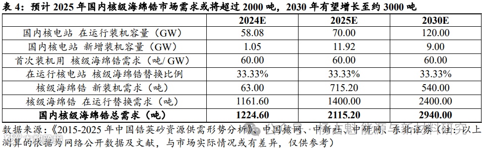 预计2025年国内核级海绵锆市场需求将超过2000吨,2030年有望增长至约3000吨。