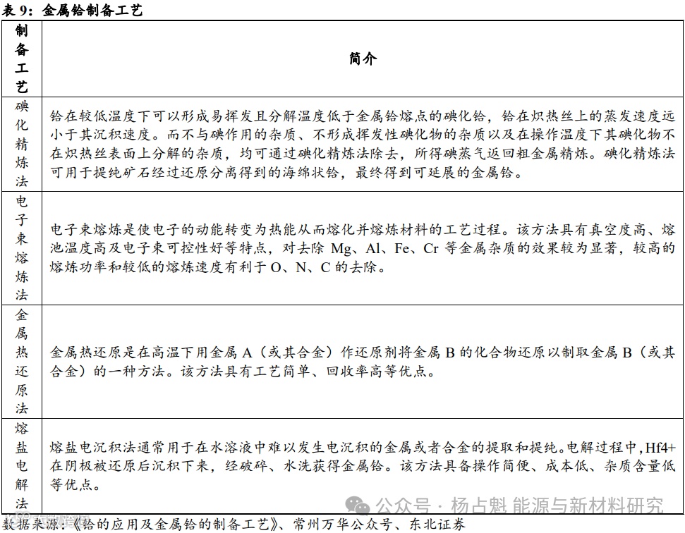 2.4. 锆铪分离在研中,有望为核级海绵锆降本,铪或能贡献更大利润