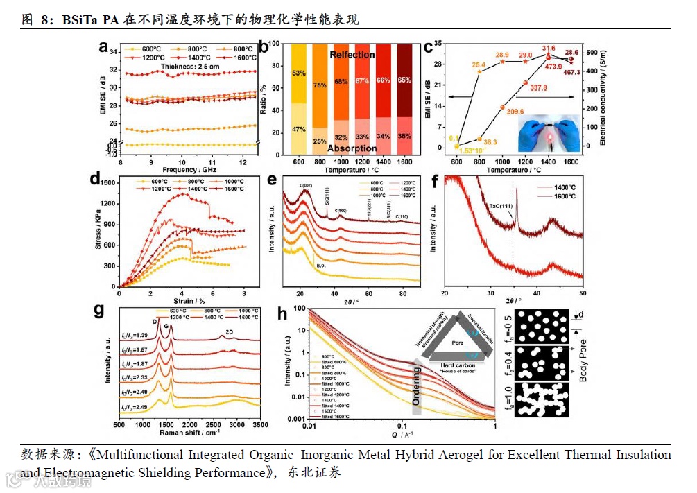 比如据《Multifunctional Integrated Organic–Inorganic‑Metal Hybrid Aerogel for Excellent Thermal Insulation and Electromagnetic Shielding Performance》,以硼(B)、硅(Si)、钽(Ta)为原材料,通过Ta⁵⁺螯合作用实现有机-无机-金属元素在分子尺度均匀分散,结合高压辅助聚合+常压干燥(APD)工艺,合成硼(B)-硅(Si)-钽(Ta)杂化酚醛气凝胶(BSiTa-PA)。