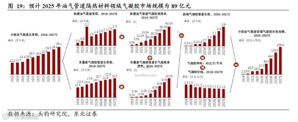 据头豹研究院数据,预计2025年油气管道隔热材料领域气凝胶市场规模为89亿元,同比+48.3%。