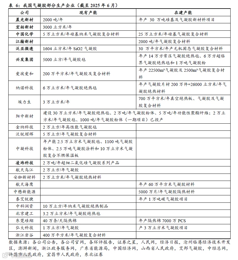 新型隔热材料领域,我国气凝胶整体起步较晚,气凝胶生产企业数量较多,但规模普遍较小,竞争格局较为分散。截至2025年6月,国内主要的气凝胶生产商包括晨光新材、宏柏新材、中国化学、江瀚新材、泛亚微透、凌玮科技、兴发集团等企业。