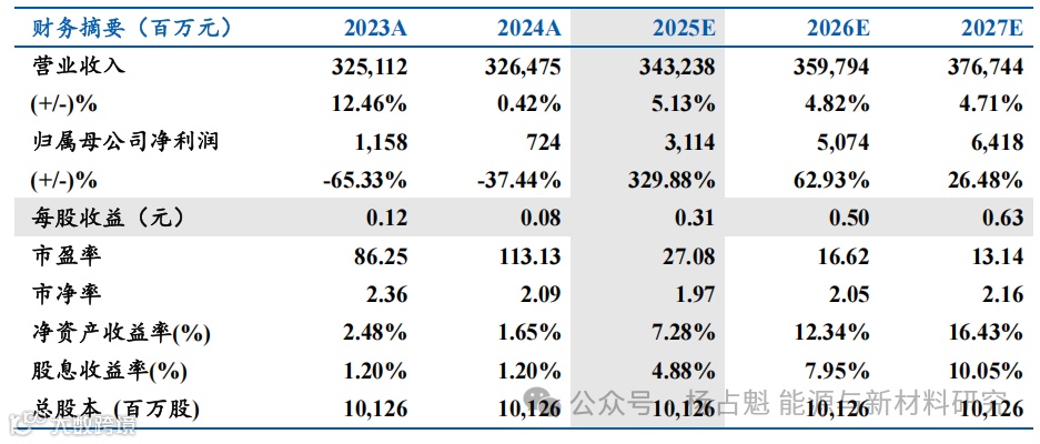 我们预计2025-2027年公司实现归母净利润31.14/50.74/64.18亿元,同比+329.88%/+62.93%/+26.48%,对应PE为28.09X/17.24X/13.63X,首次覆盖,予以“买入”评级。