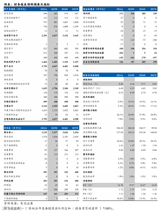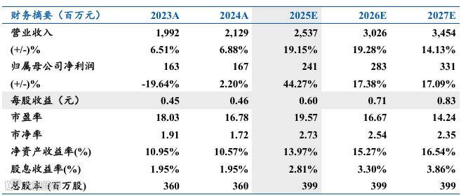 考虑到公司作为国内欧式起重机龙头,同时出海业务增长强劲,加大水利水电行业布局,我们预计2025-2027年公司实现归母净利润2.41/2.83/3.31亿元,对应PE为19.57X/16.67X/14.24X,维持“买入”评级。