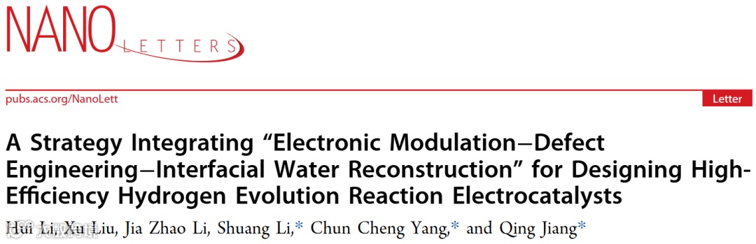 A Strategy Integrating “Electronic Modulation–Defect Engineering–Interfacial Water Reconstruction” for Designing High-Efficiency Hydrogen Evolution Reaction Electrocatalysts, Nano Letters (online).