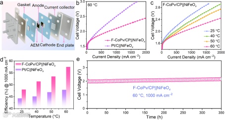 要点五:F-CoPv/CP复合材料在阴离子交换膜(AEM)电解槽中的应用v