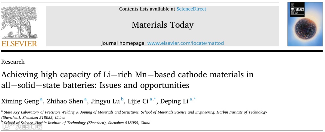 近日,来自哈尔滨工业大学(深圳)的李德平副教授与慈立杰教授,在国际知名期刊Materials Today 上发表题为“Achieving high capacity of Li-rich Mn-based cathode materials in all-solid-state batteries: Issues and opportunities“的综述文章。该综述文章回顾了富锂锰全固态电池发展历程与研究进展,并从“材料本征-固固界面-复合正极”三个维度系统论述了富锂锰正极在全固态体系下面临的容量释放问题以及潜在的解决方案。