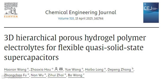 ”3D hierarchical porous hydrogel polymer electrolytes for flexible quasi-solid-state supercapacitors”
