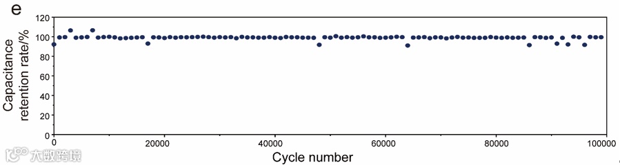 基于该水凝胶聚合物电解质的扣式SCs室温下在0.5A/g电流密度下经过40,000圈充放电循环,比电容保持100%,在零下18℃~50℃可以稳定工作(图5)。