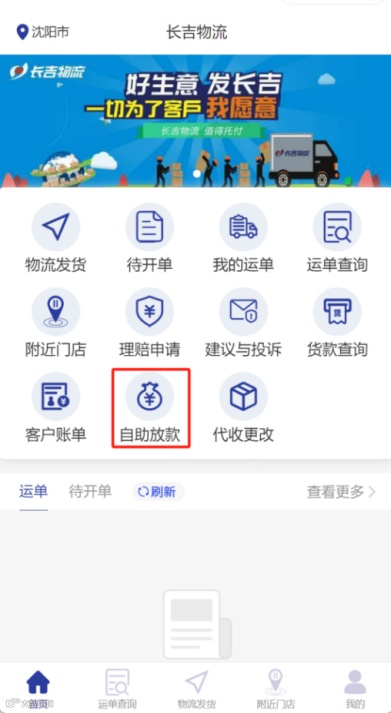 为方便代收客户放款,长吉物流小程序新增了自助放款功能,代收客户仅需要登录小程序通过自助放款功能即可足不出户办理放款业务。