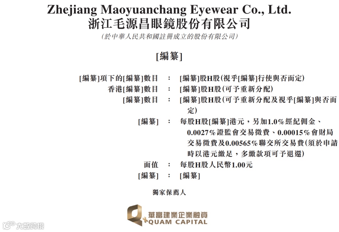 据港交所4月2日披露,浙江毛源昌眼镜股份有限公司向港交所主板递交上市申请,华富建业企业融资为独家保荐人。