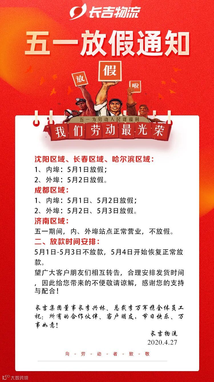 导读:长吉物流五一放假通知